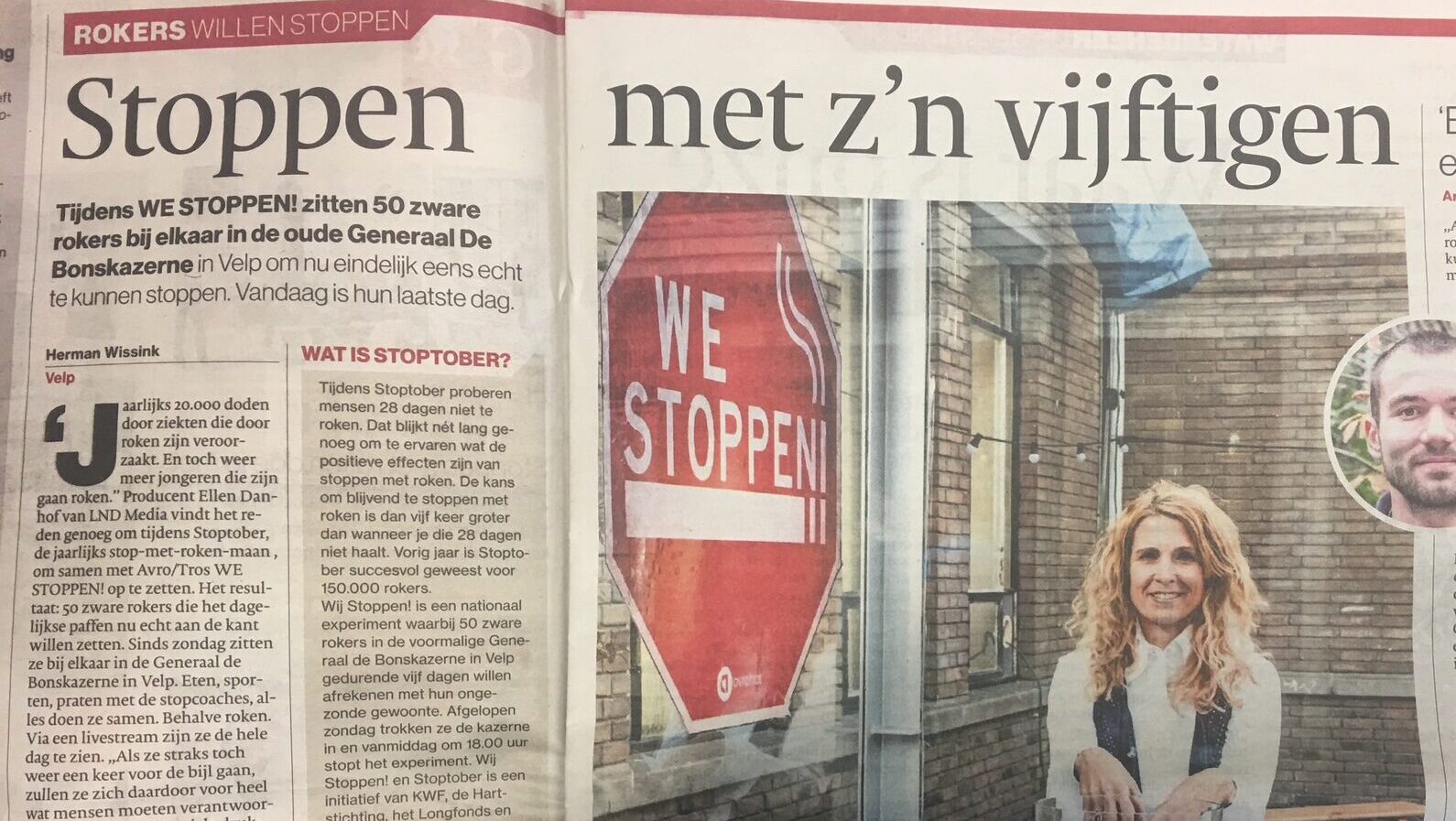 WE STOPPEN! (Avrotros i.s.m. Stoptober, producent LND Media) een crossmediale productie waarin vijftig rokers 5 etmalen lang samen van hun verslaving afkickten en mediapartijen waaronder NOS Journaal, TV Show, ad.nl, ADR-kranten, radio en liveshow op themakanaal NPO werden samengebracht.